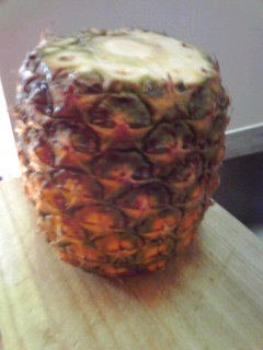 パイナップルをもらっていたが、なかなか食べる機会がなく、部屋の芳香剤になっていたが、インターネットで剥き方を調べてきってみた。(実は札の裏に切り方が書いてあったのだが、それに気づいたのは、これを書いているとき。)