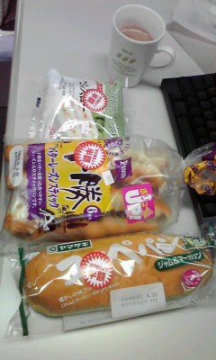 帰りにスーパーでパンを買う。なんと半額3連発でパン3つで209円。エスプレッソとともにランチパックとスティックパン半分をくって満腹。