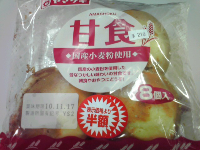 帰りは傘といっしょに買ってきたヤマザキ甘食を食べながら会社に戻る。もう雨は止んでたけど靴が濡れて気持ちわるい。いま扇風機で靴と靴下を乾かしているところだけど、スペアの靴下をはくかな。