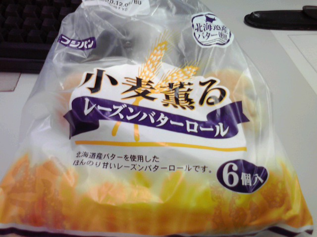 練習前の補食はレーズンバターロール4個(114Kcal,たんぱく質2.4g,脂質3.1,炭水化物19.2 x4)。