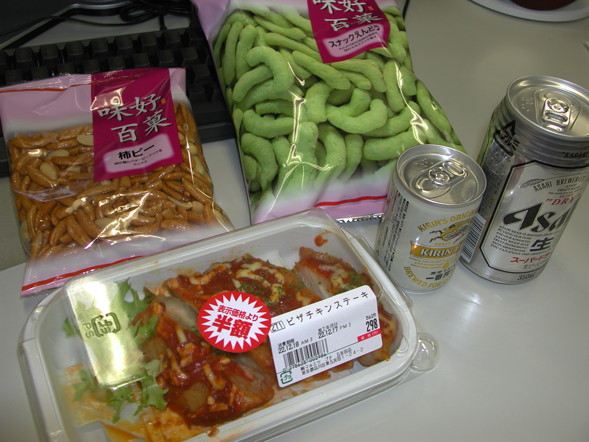 dscn5245勉強会で遅くなったので家に帰れず、会社で適当に食事。冷蔵庫から会社に届いたお歳暮のビールを頂戴する。菓子2袋で977kcal。それに比べればビールはたいしたことはない。gkgkやっぱり一番絞りはおいしいなぁ。プハァー