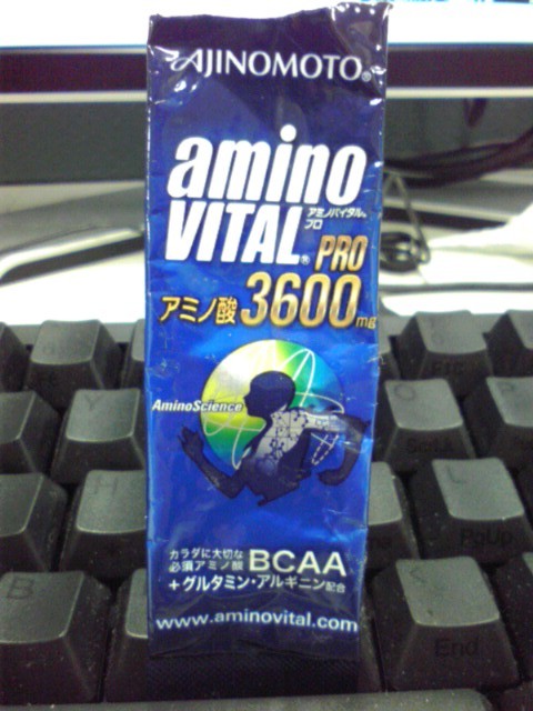 泳ぐ前に念のためにアミノバイタルプロを飲んだ。これが手持ちの最後の1袋。