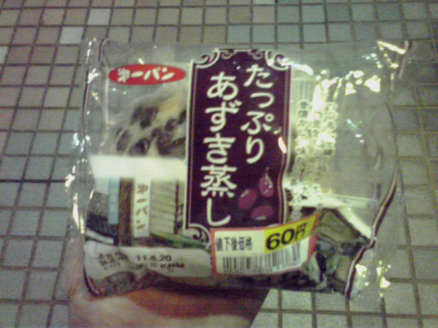 プールから出て靴を履くところに3人掛けのいすがあるだけで、ちょっと狭い。そこでゆっくりパンを食べるわけにもいかず、外に出て橋の街灯の下で補食のパン「たっぷりあずき蒸し」(320kcal)。水をもってこなかったのは失敗だった。グリーンプールは冷水機があるし、いつものプールだったら終ってから会社にもどってコーヒーなんかを飲むので、準備がたりなかった。
