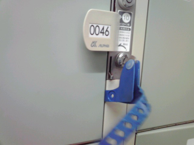 コインロッカーを締めたら鍵のバンドが扉にはさまってて一度開けるはめに。なんてこった。10円の損失。(写真は再現映像)