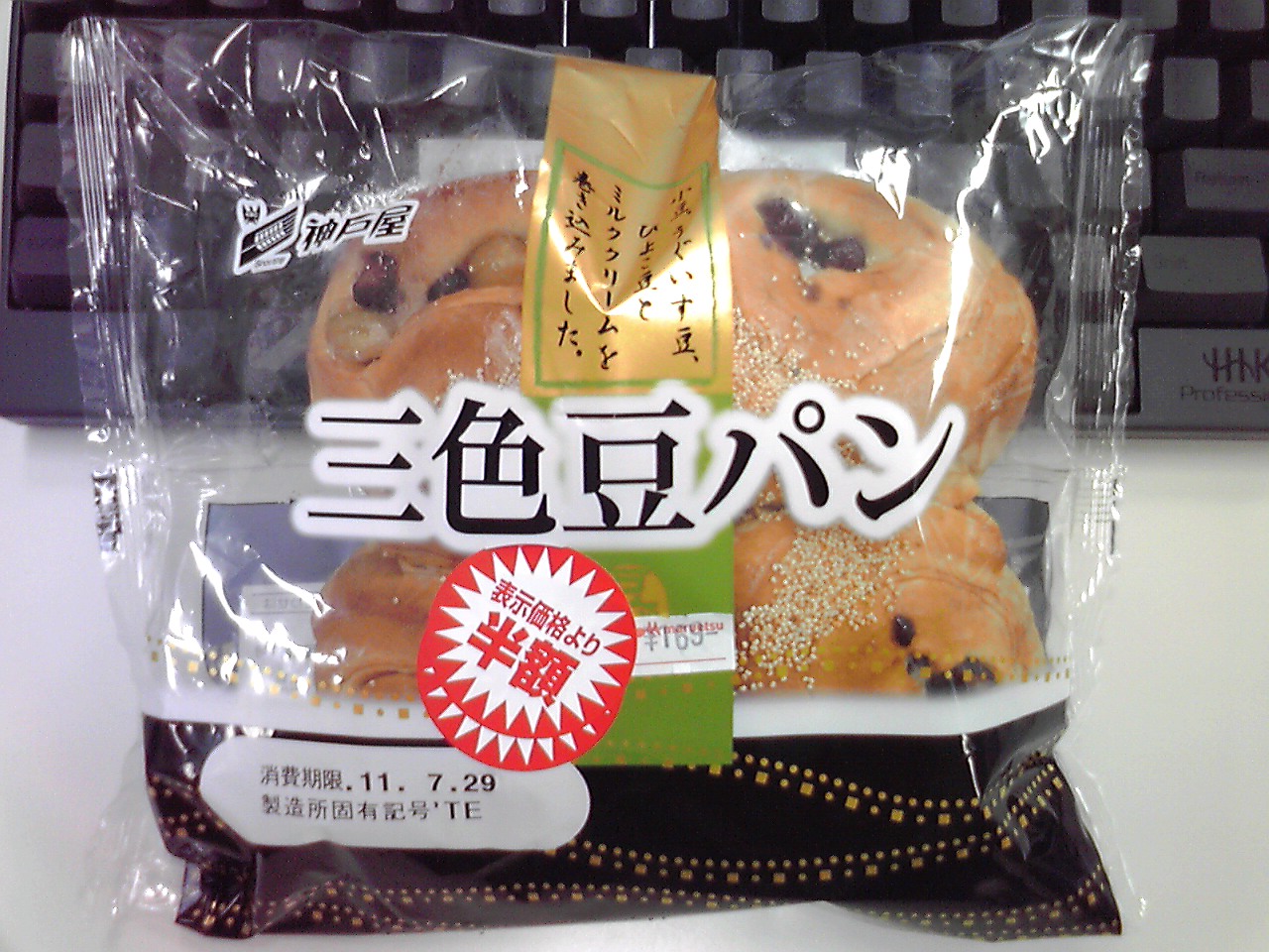 練習後の補食: プロテイン30g,神戸屋三色豆パン(617kcal,たんぱく質14.4g,脂質16.5g,炭水化物105.7g)。