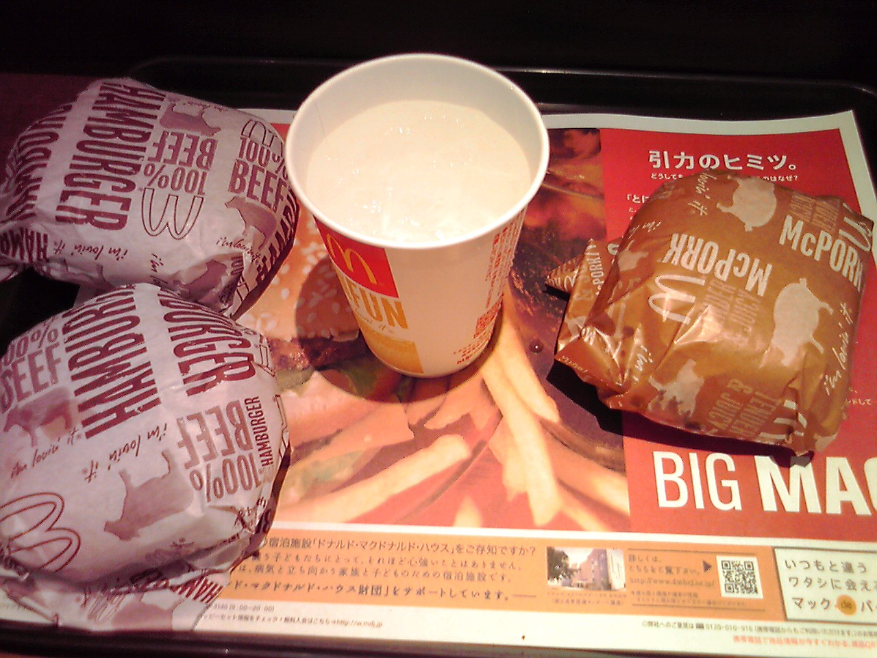 五反田駅ちかくのマクドナルドでハンバーガーx3で昼飯。なかなかの混雑。