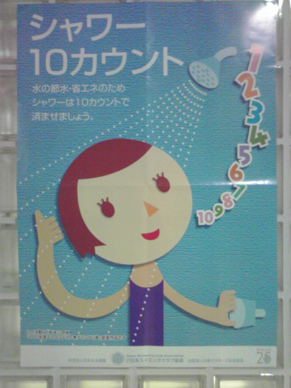 一週間ぶりの五反田プール。入り口にシャワーを節約しようとのポスターがはってあったが、10カウントは短すぎるような気がする。