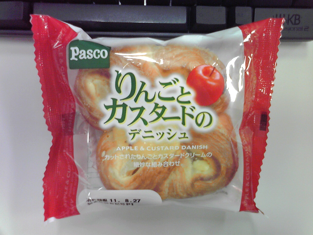 練習後の補食:プロテイン30g,Pascoりんごとカスタードのデニッシュ(362kcal,たんぱく質5.5g,脂質18.8g,炭水化物42.7g)。