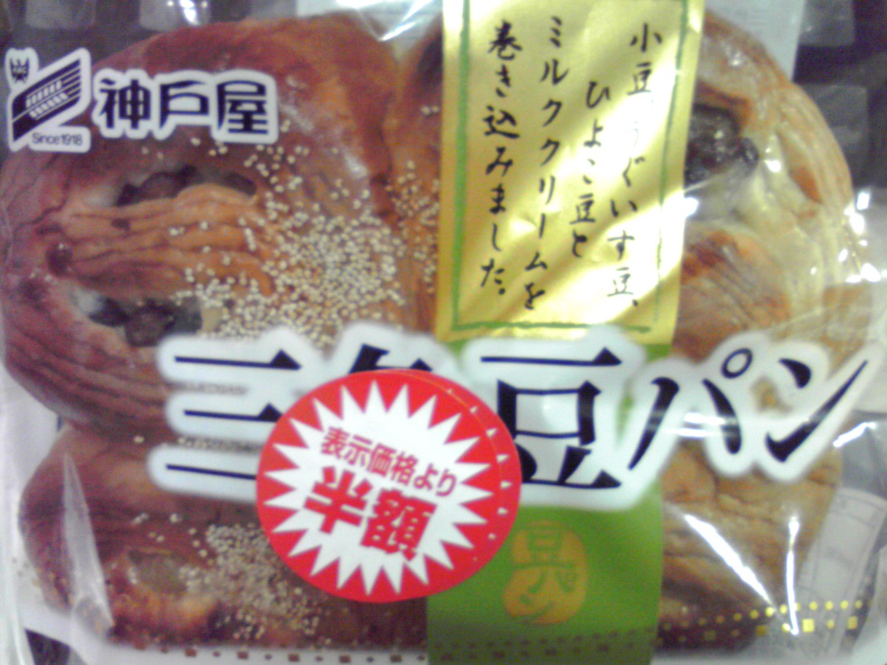 練習後の補食:プロテイン30g,三色豆パン(617kcal,たん白質14.4g,脂質16.5g,炭水化物105.7g)。いつものスーパーの棚がすかすかになってた。天気が悪くなると予想して抑えたか。