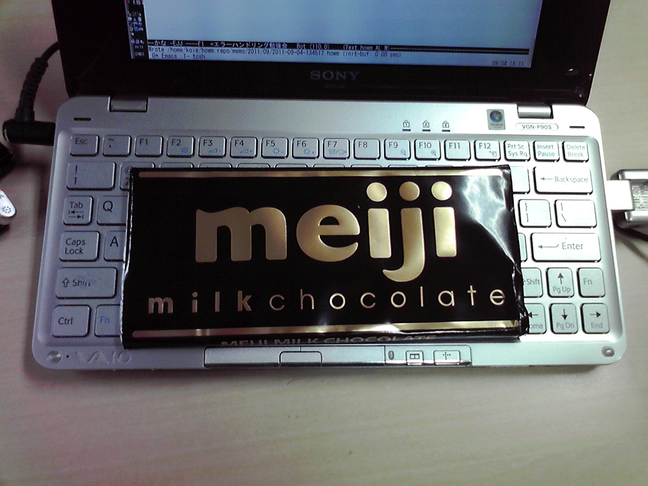 電源タップをもってきたけど、人が少なかったのもあって余裕。WiMAXの電波強度は中程度。とりあえずチョコレートを喰ってNRG補給しながら開始を待つ。