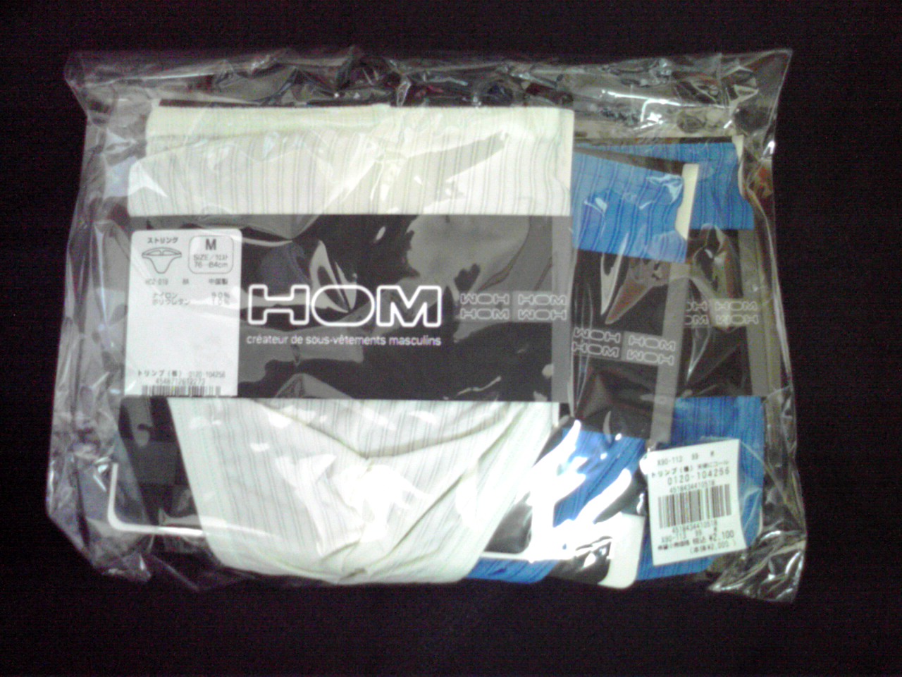 そんなかんじで、がっかりしてたらamazonでトリンプのHOMブランドのパンツが3枚1500円ちょいで買えることを発見!このへんとか。本家の通販サイトでも売ってた。けっこう前から売ってたみたいだが、HOMなんて高いからかわねーよとおもってたので気づかなかった。よくわからんが1と2があったので両方ポチった。届いたのを見ると1はタクテルのもので、2はプラスチックの箱に入った派手系のやつだった。さすがにこれらはちゃんと普段履きできる普通なやつだった。amazonのコメントには3枚とも同じ色・デザインだったというのもあったが、うちにとどいたやつは1のが2枚同じ色・デザインだっただけだった。