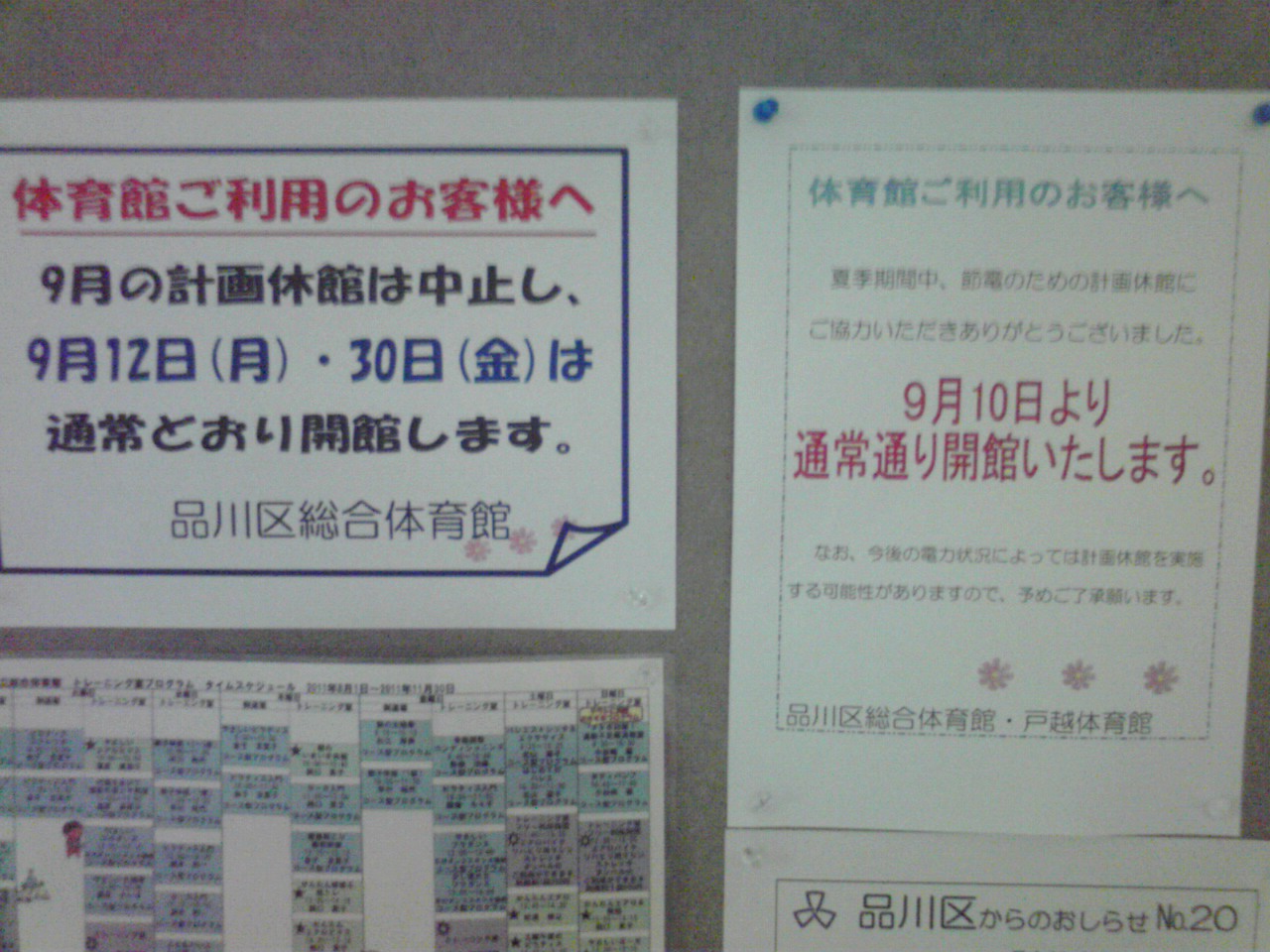 品川のプール、いつのまにか9月の計画休館がなくなってた。そういえばこの前の月曜日も予定表では休館日だったが営業してた(泳いだし)。