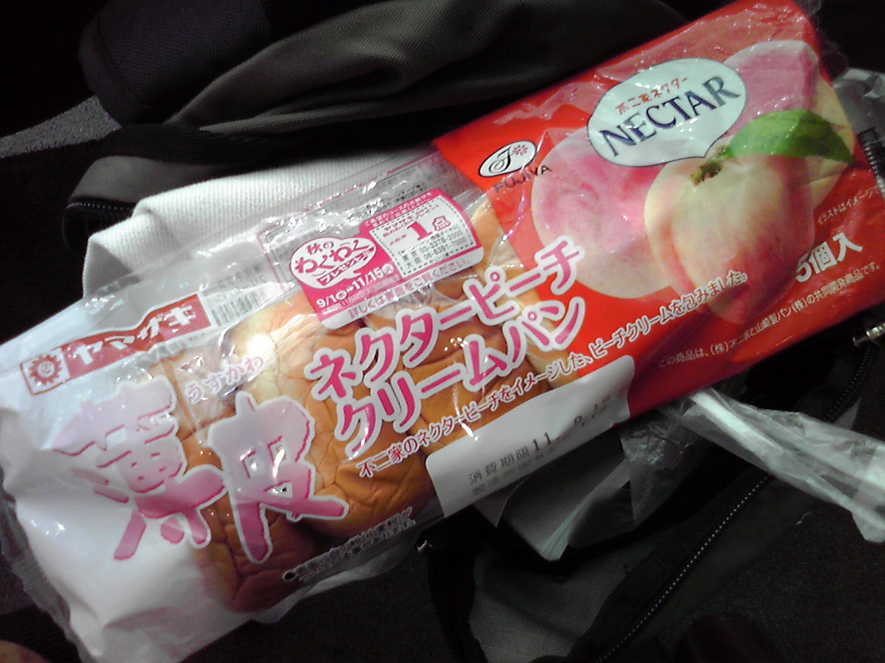 薄皮ネクターピーチクリームパン (1個あたり124kcal,たん白質2.1g,脂質6.4g,炭水化物14.4g) x3個