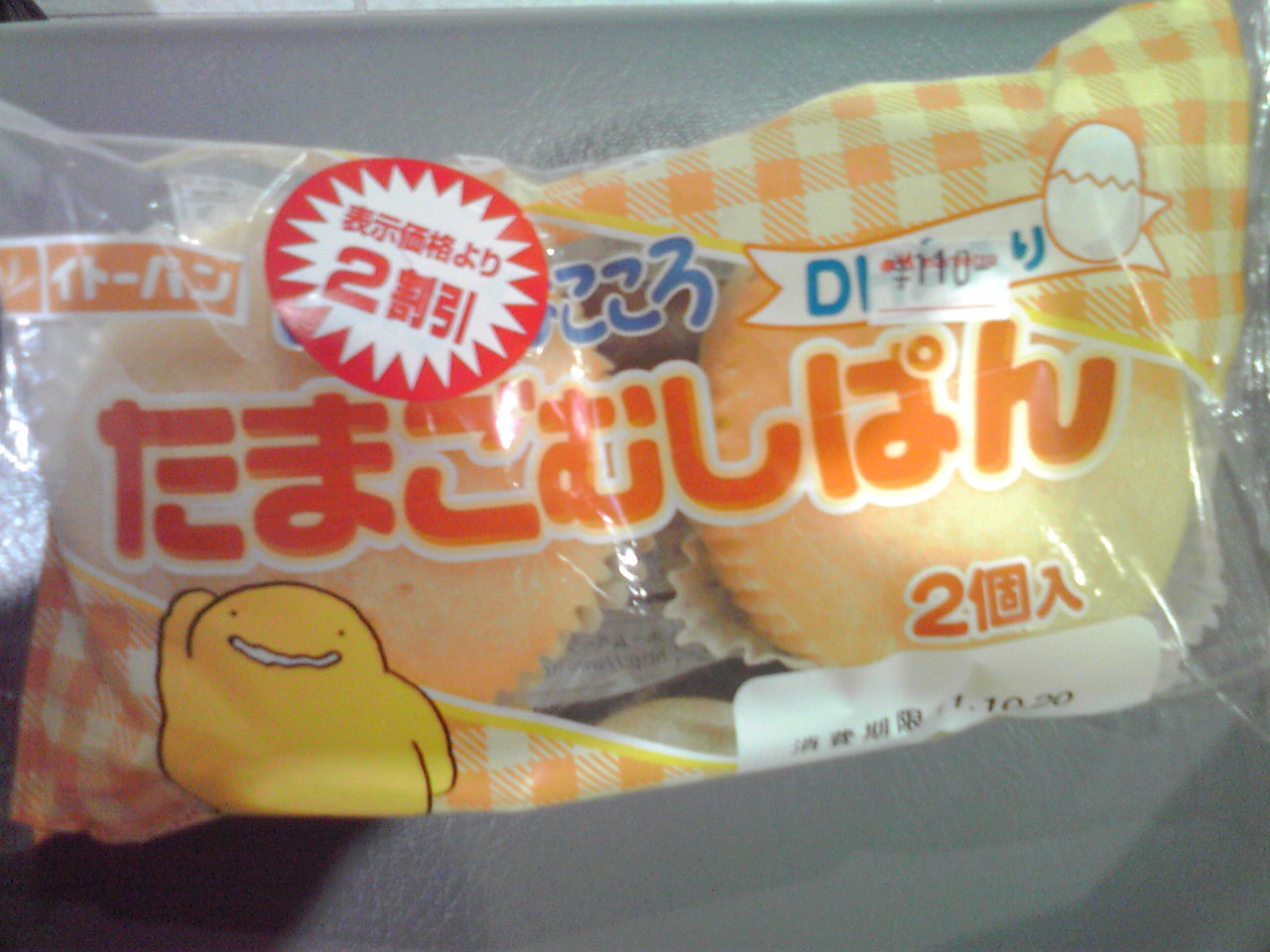練習後のおやつ: プロテイン+ブドウ糖、たまごむしぱん(2*(233kcal,たんぱく質3.2g,脂質12.5g,炭水化物27.1g))。