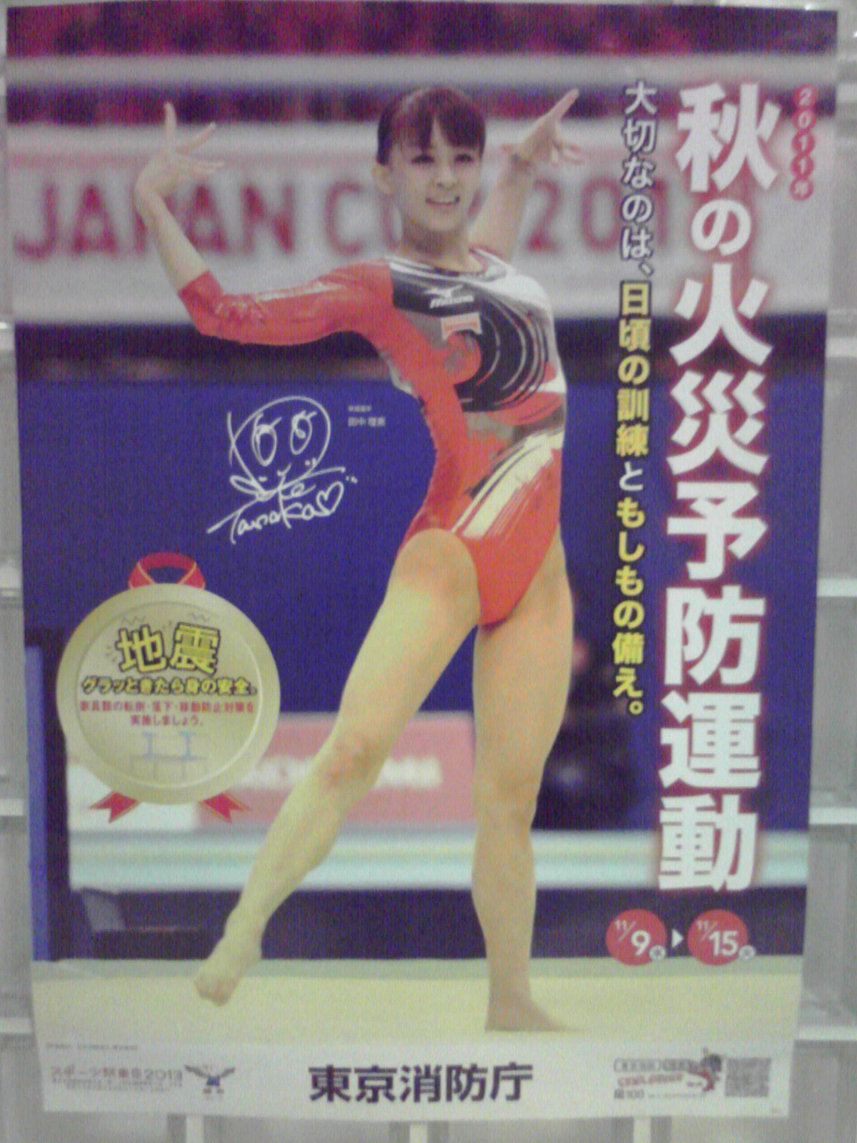 プール入口の壁に体操の田中理恵選手を起用したポスターがはってあったのでパチリ。