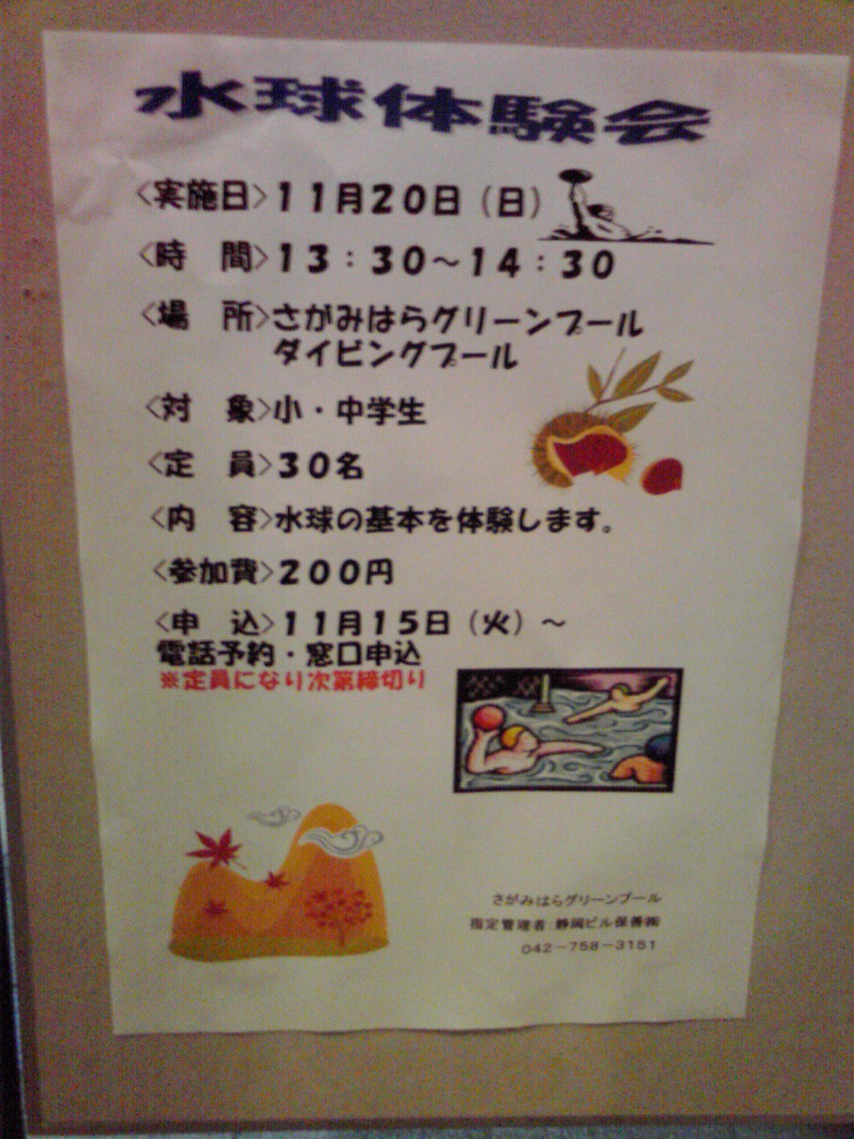 初心者飛込み教室とか水泳体験会とかの案内が出ていた。飛び込みは一度やってみたいなぁ。