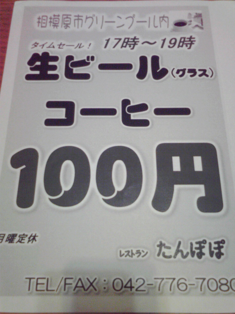 プールからあがったあとレストランたんぽでコーヒーでもすすろうとおもったら電気が消えとる。夕方はコーヒーが100円で飲めるというパンフレットがあったとおもうんだが.. わけわからん
