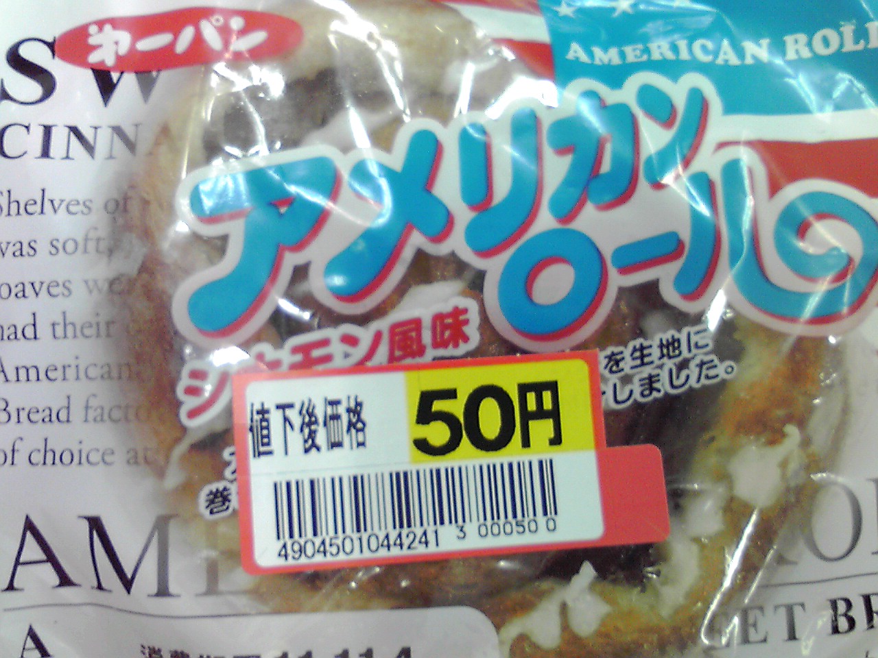 練習後の補食: プロテイン20g+ブドウ糖10g、第一パン アメリカンロール シナモン風味(384kcal,たんぱく質6.2g,脂質16.9g,炭水化物51.7g)。シナモン「風味」とかいてあるが、ちゃんとシナモンは原材料に入っていた。