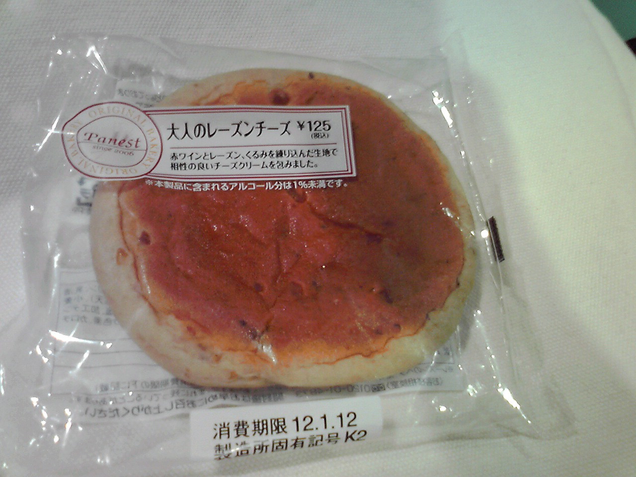 今年最初のハチ公練の日。夕方は風も強く気温も下ってとても寒くなった。代々木プールに着いたころには体の芯まで冷えひえ。とりあえず、ちょっとだけ菓子パン(木村屋 大人のレーズンチーズ 125円;278kcal,たんぱく質6.4g,脂質12.7g,炭水化物34.5g)をかじる。