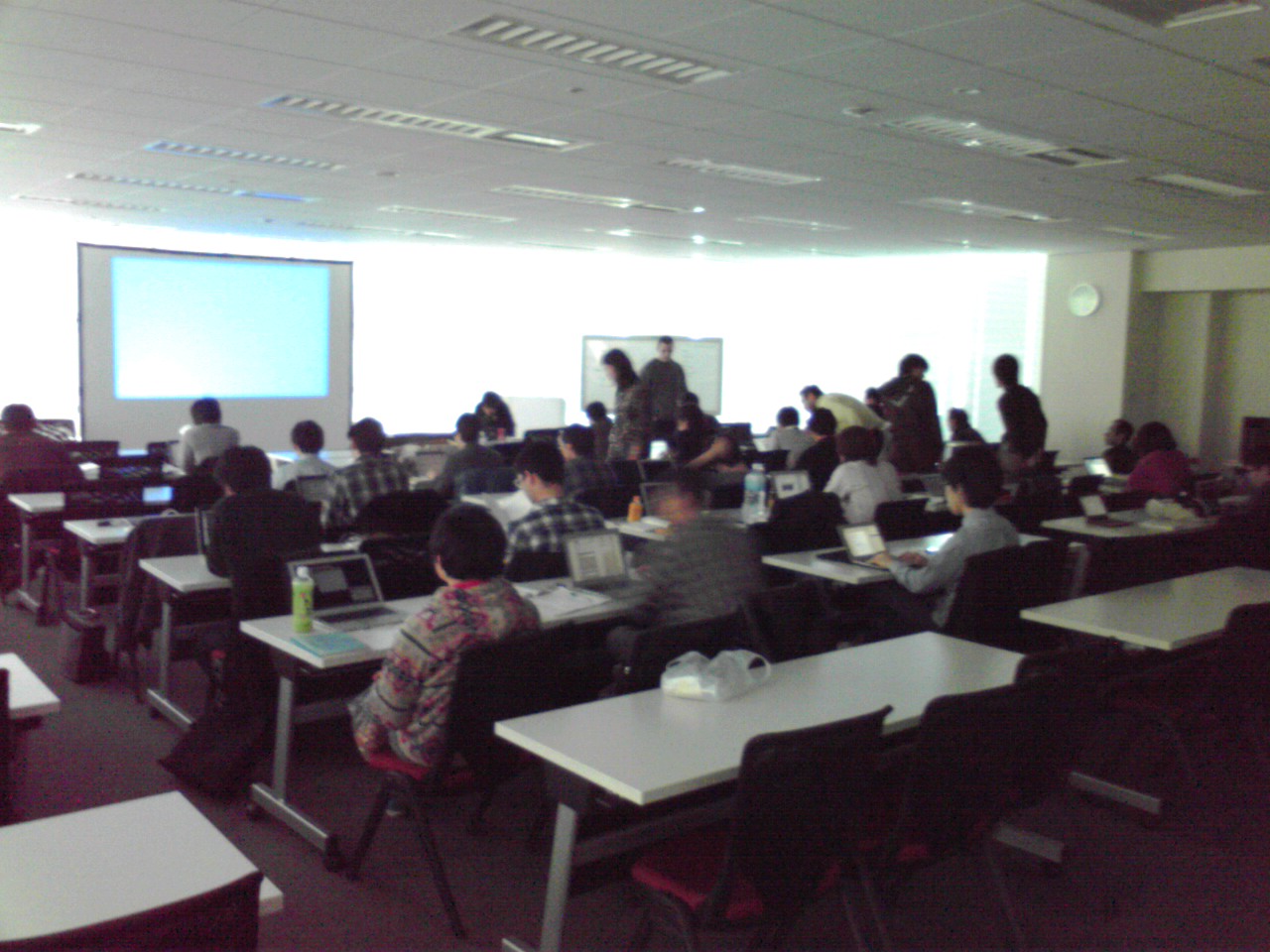 ながかったスタートHaskellも今回で最終回。ちょっと仕事がいそがしくなってて今回はほとんど問題を解いてない。いつものように神保町のマクドナルドでいつものハンバーガーで腹ごしらえして会場へ。空腹対策にプロテインとインスタントコーヒーとブドウ糖の混合液をもっていった。甘いだけのものより腹持ちがよかったような気がした。