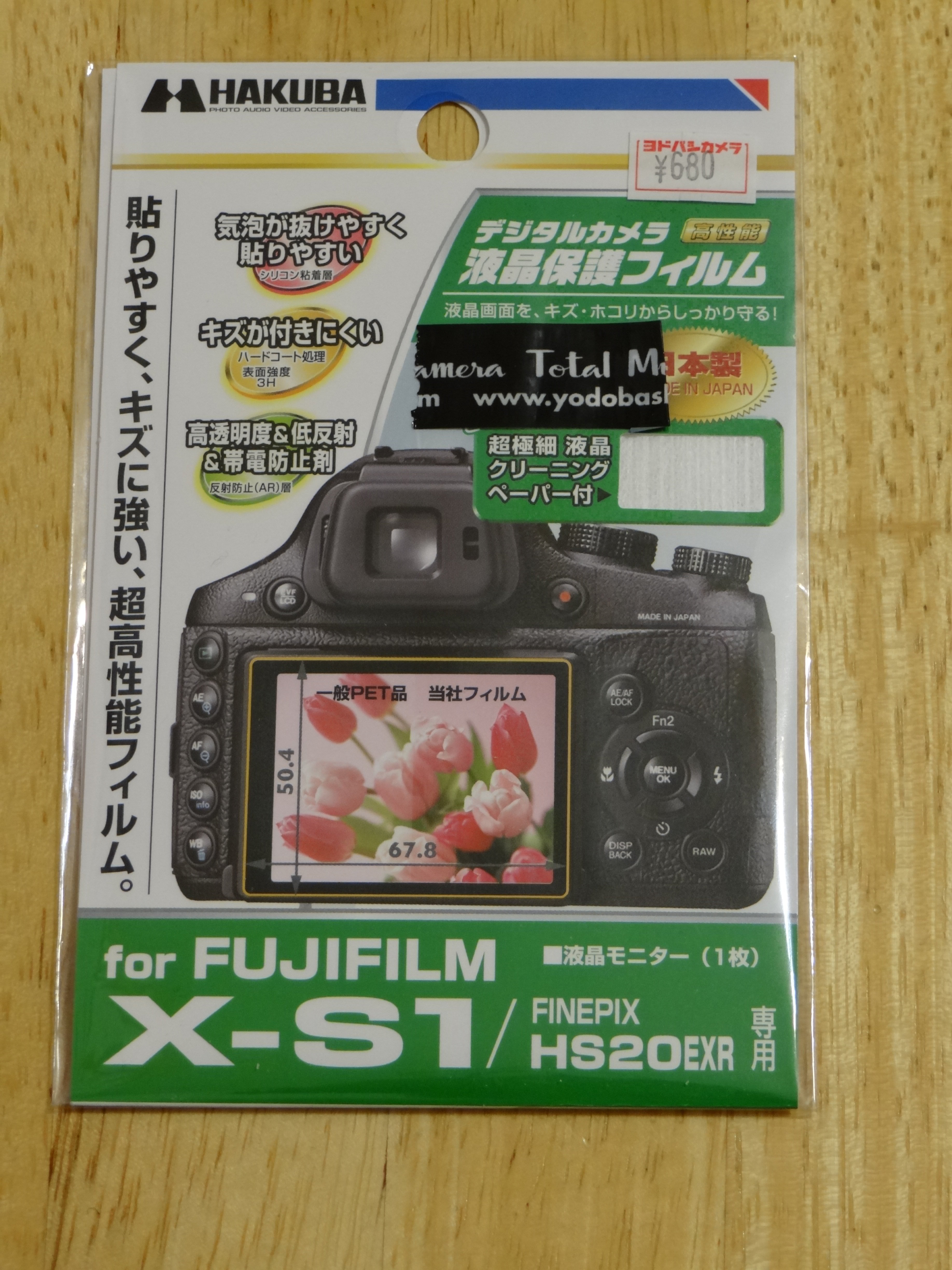 新宿ヨドバシでハクバの液晶保護フィルムを買ってきた。ぴったり型番のがおいてなかったのでそれっぽいサイズのやつ(60x45~72x65)のなかからX-S1用 67.8x50.4を買ってきた。ケンコーのやつは防汚コートがあるとかいてあったのでそっちにしたかったがサイズがわからなかった。