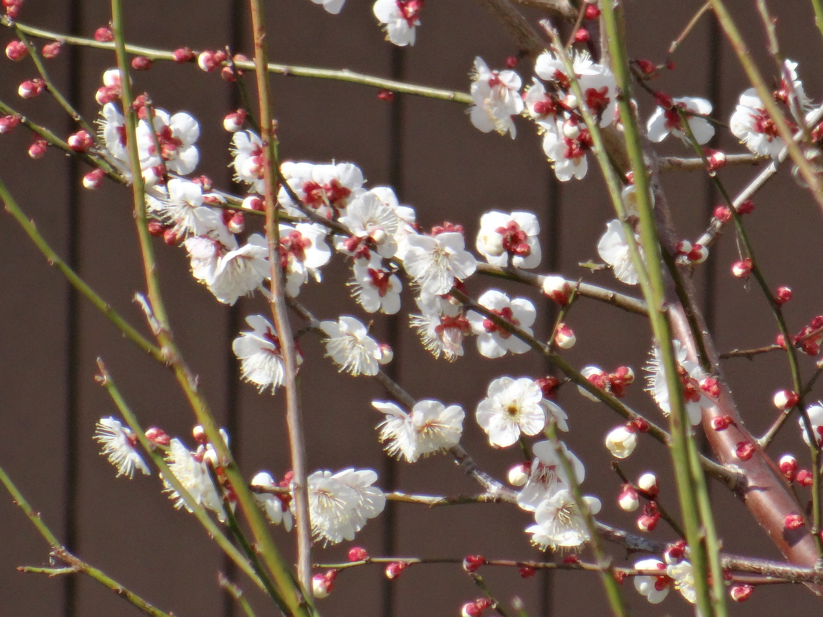 窓から見える隣家の梅を撮ってみた。(手持ち)