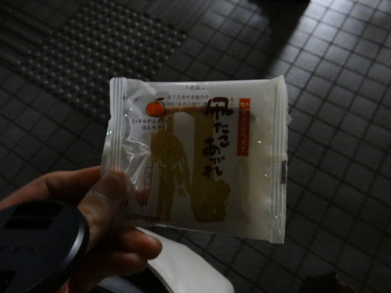 お菓子をいただく。かすてらラスク『凧たこあがれ』。みかんの香りがいい。