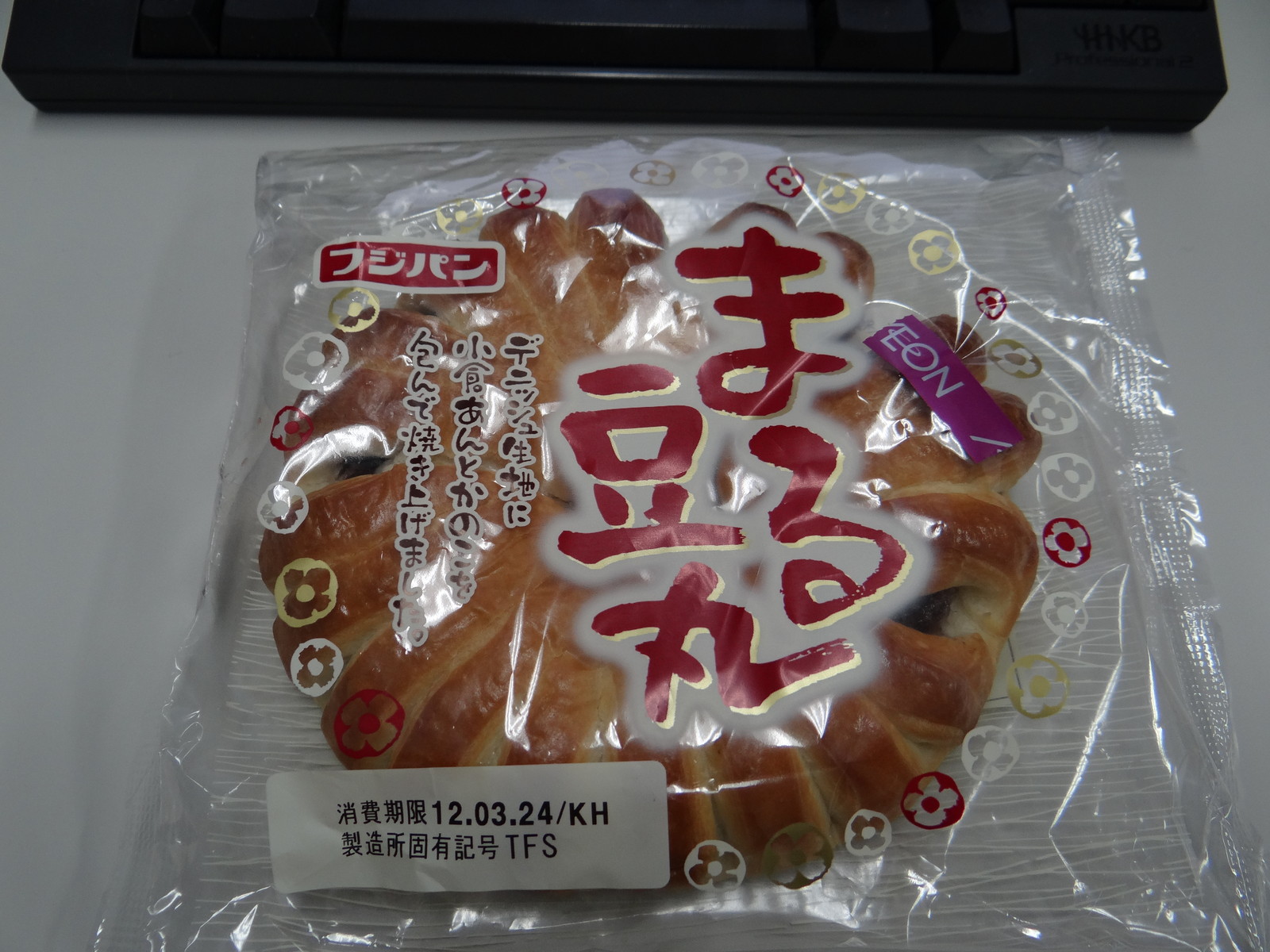 練習後の補食: プロテイン15g, フジパン まる豆丸(505kcal,たんぱく質9.3g,脂質18.3g,炭水化物75.8g)。しっとりした生地だったので◎。
