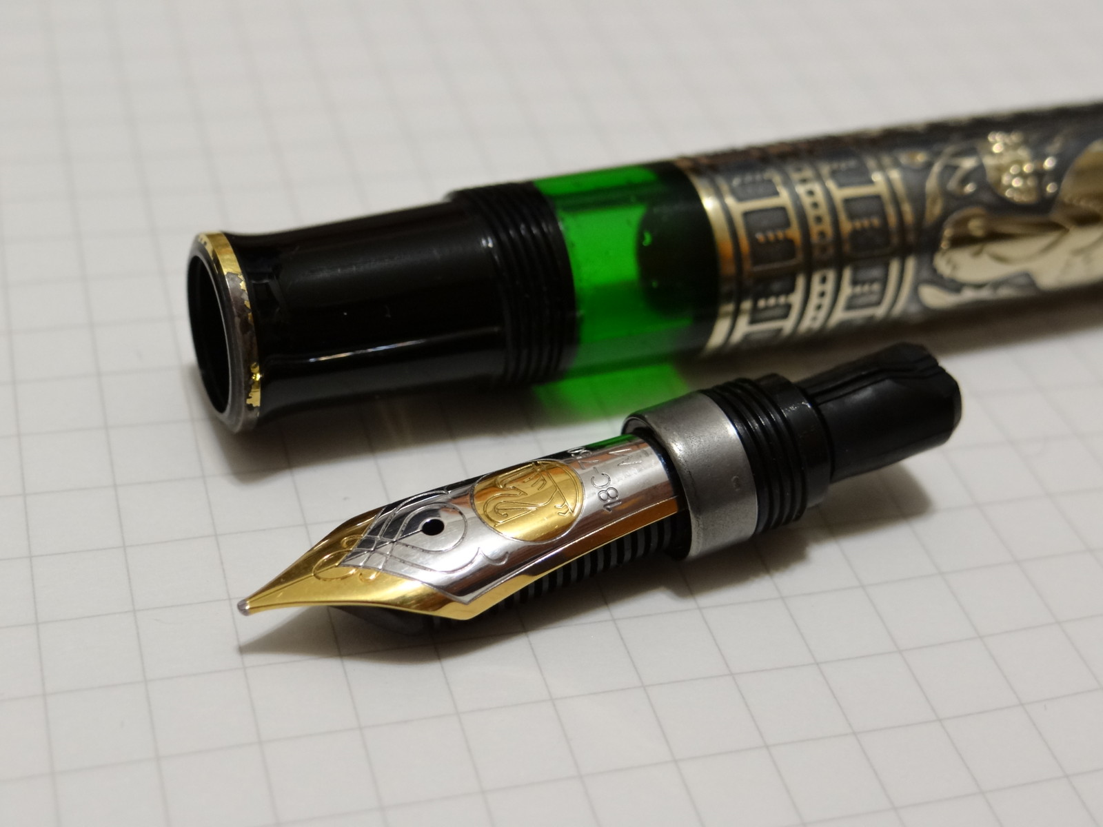 で、モンブランのブルーブラックからペリカンのブルーブラックに入れ替えてみたのだが、どうにも透明感がありすぎる。ブルーブラックはもうちょっと曇った感じがするはずなんだが。