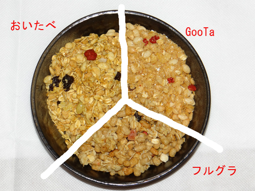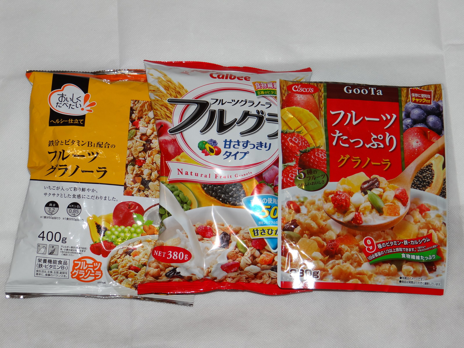 ならべてみるとフルグラはあまりフルーツが多くないように見える。