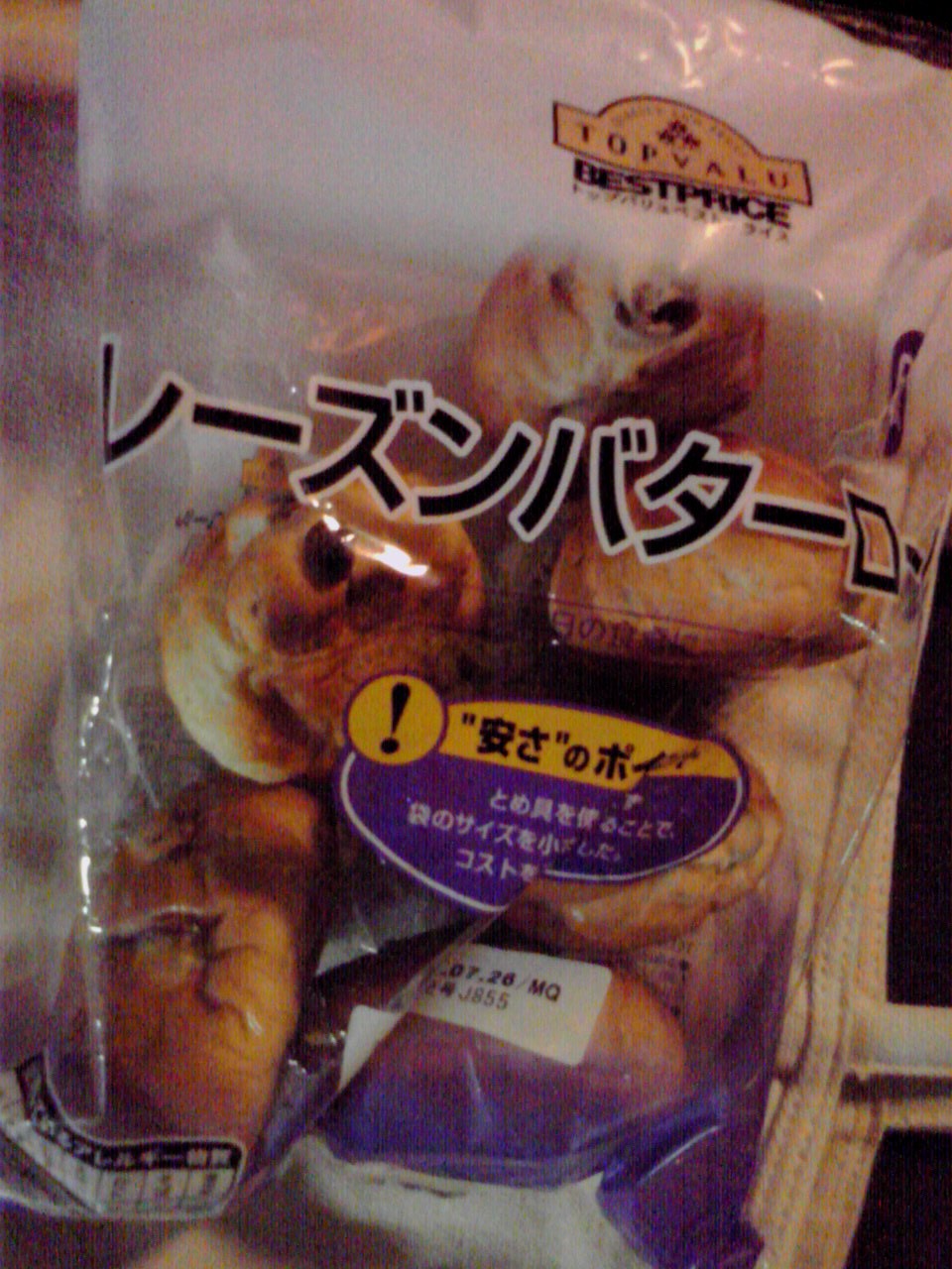 練習後の補食: プロテイン20g, レーズンバターロール6個(@84kcal,たんぱく質2.3g,脂質2.4g,炭水化物13.1g)。