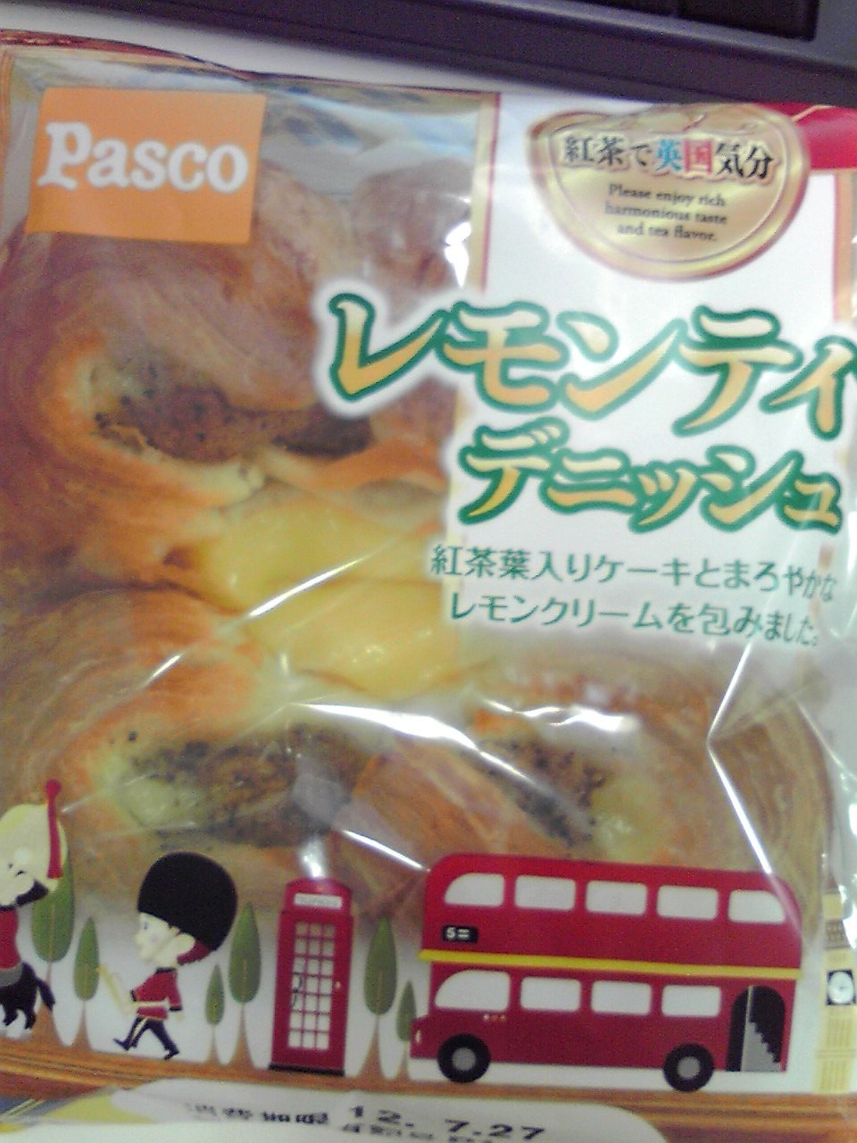 練習前の補食: Pasco レモンティーデニッシュ(433kcal,たんぱく質6.8g,脂質24.1g,炭水化物47.3g)。