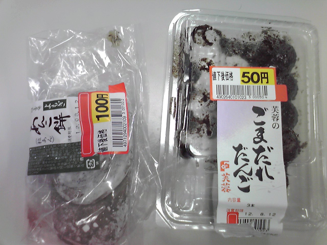 練習後の補食: プロテイン15g, ごまだれだんご1本、アンコ餅2こ 。