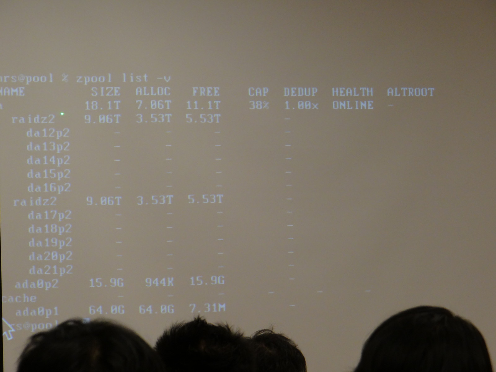 ZFS: SUNが手を引いてOracleが2年以上ソースを出さなくなった。illumosに開発者が移動している。商用のデバイスをそのコードをつかって商売していて、FreeBSDに入ってきている。FreeBSDのコミュニティーに技術がたまってきているので突然消えたりしないので安心して。