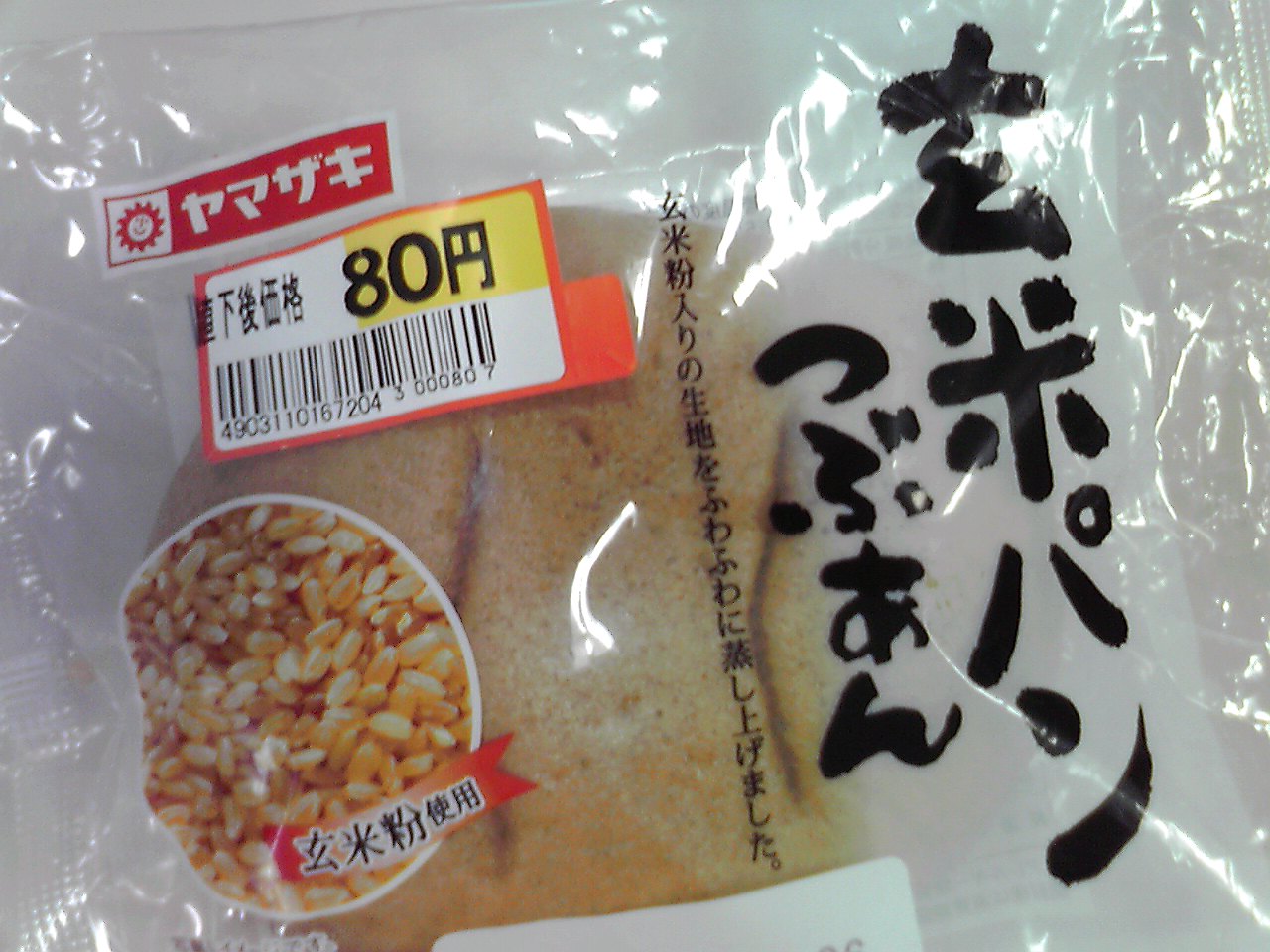 練習後の補食: プロテイン15g,ヤマザキ玄米パン(つぶあん)(374kcal,たんぱく質9.6g,脂質3.4g,炭水化物76.2g)。