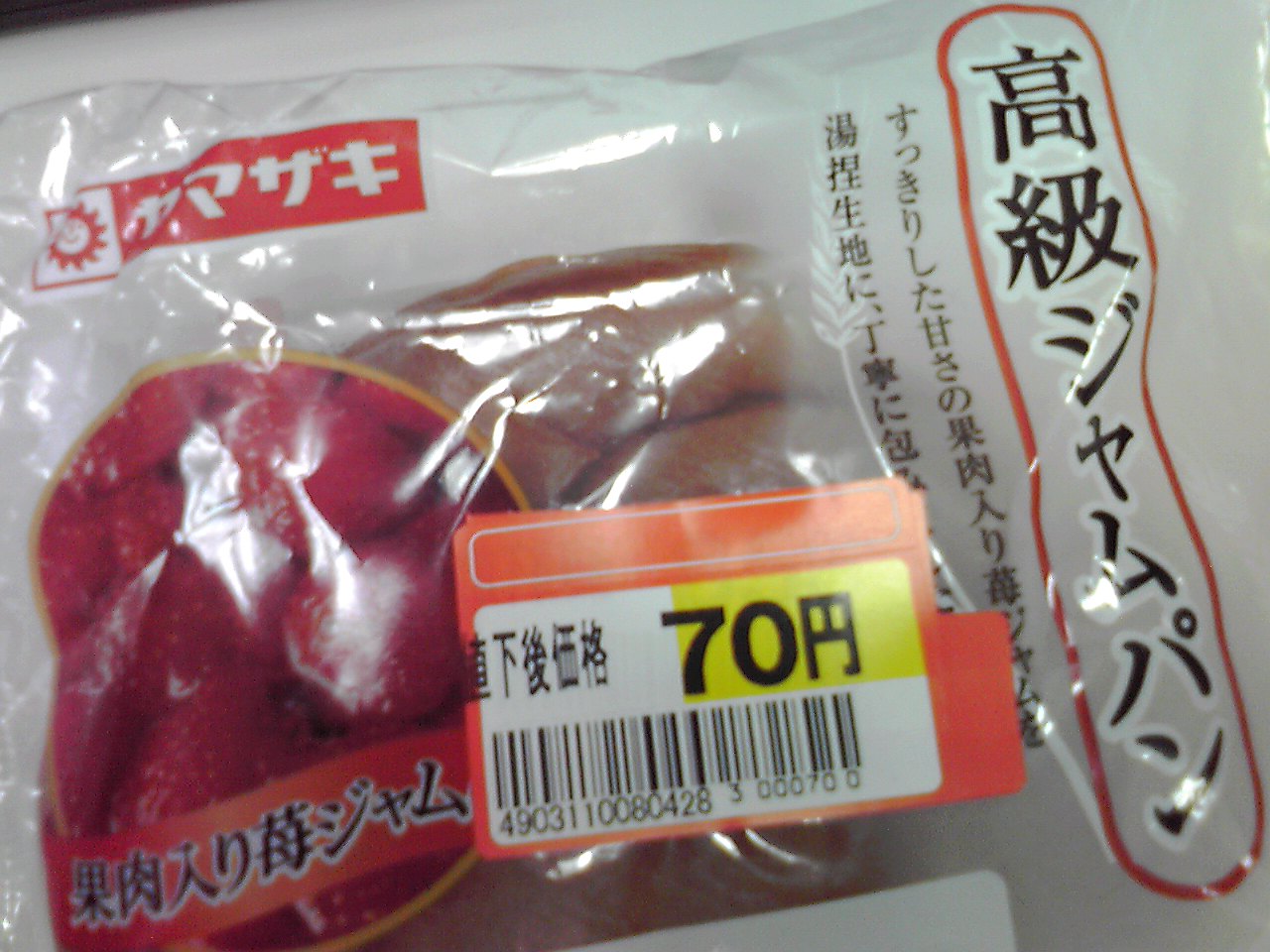練習後の補食: プロテイン20g, ヤマザキ高級ジャムパン(321kcal,たんぱく質7.2g,脂質3.5g,炭水化物65.2g)。