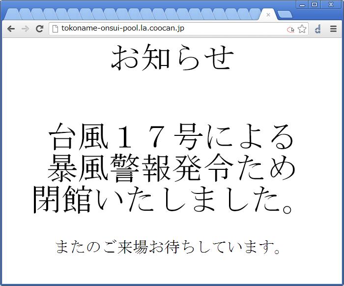 かわりにhttp://tokoname-onsui-pool.la.coocan.jp/index.html"常滑温水プール(略してTOP)で泳いで清めてきた。