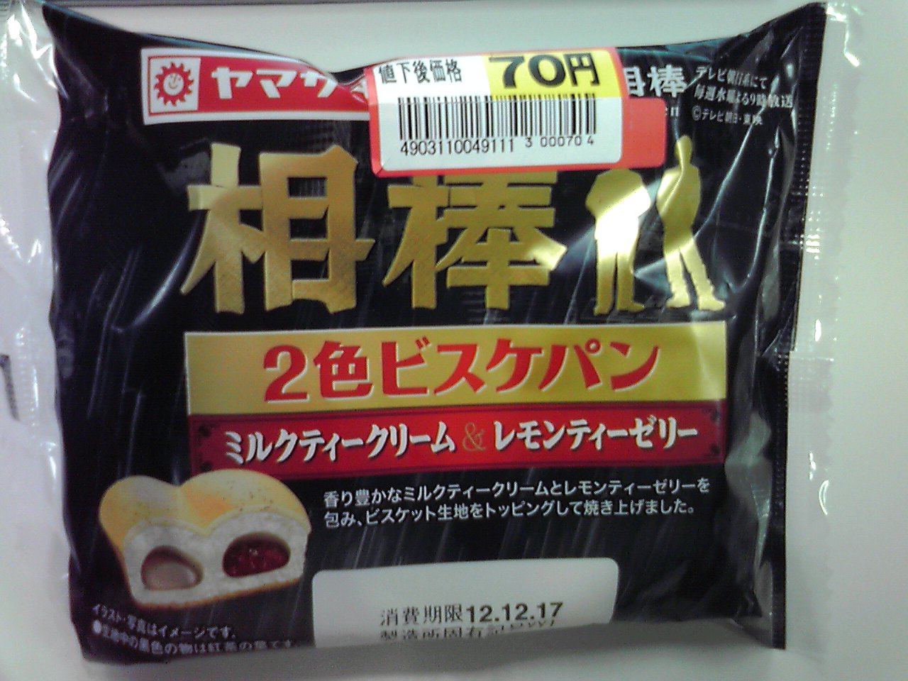 練習前の補食: ヤマザキ 2色ビスケパン ミルクティークリーム&レモンティーゼリー (401kcal,たんぱく質7.2g,脂質15.9g,炭水化物57.3g)。