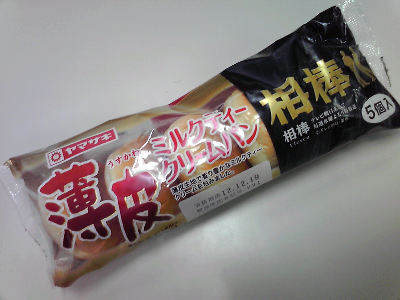 練習後の補食: プロテイン20g, ヤマザキ 薄皮ミルクティークリームパン(108kcal,たんぱく質1.9g,脂質4.2g,炭水化物15.6g *5)。