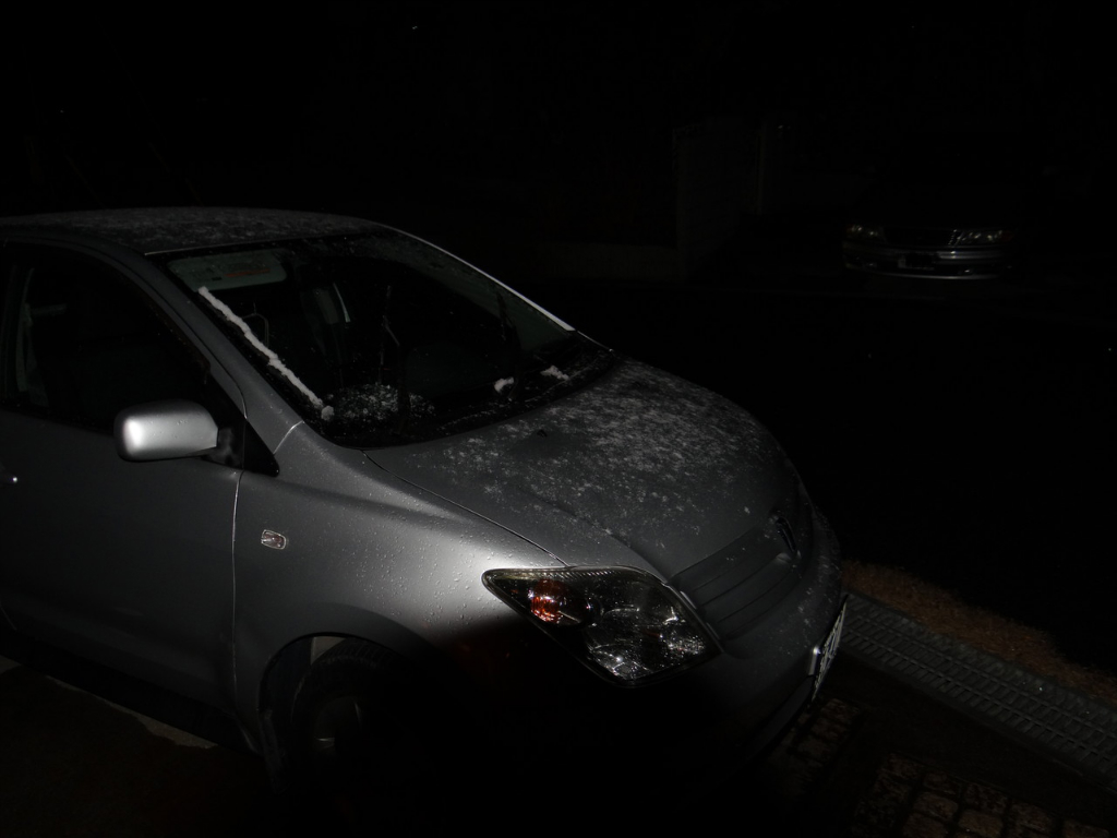 1/3の常滑は夜に雪がぱらぱら降ってきて、車のボンネットにちょっと積ってた。