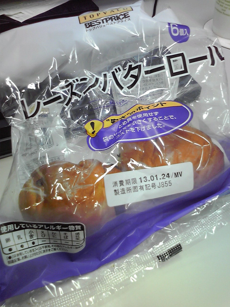 練習後の補食: プロテイン20g, レーズンバターロール2個。