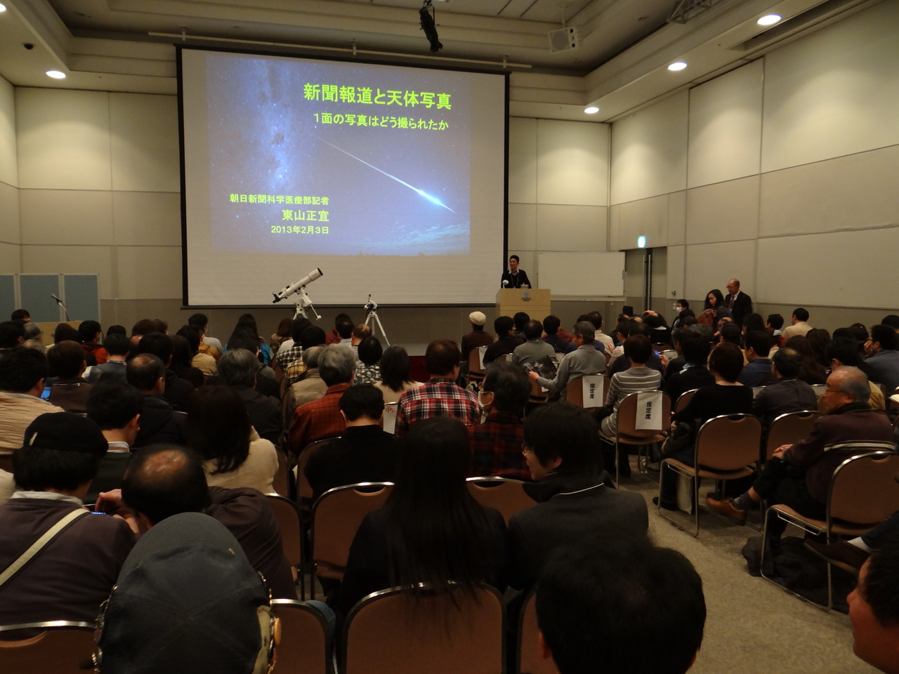会場風景。ほんと、ばかでかいレンズをぶらさげたひとがうようよしている。