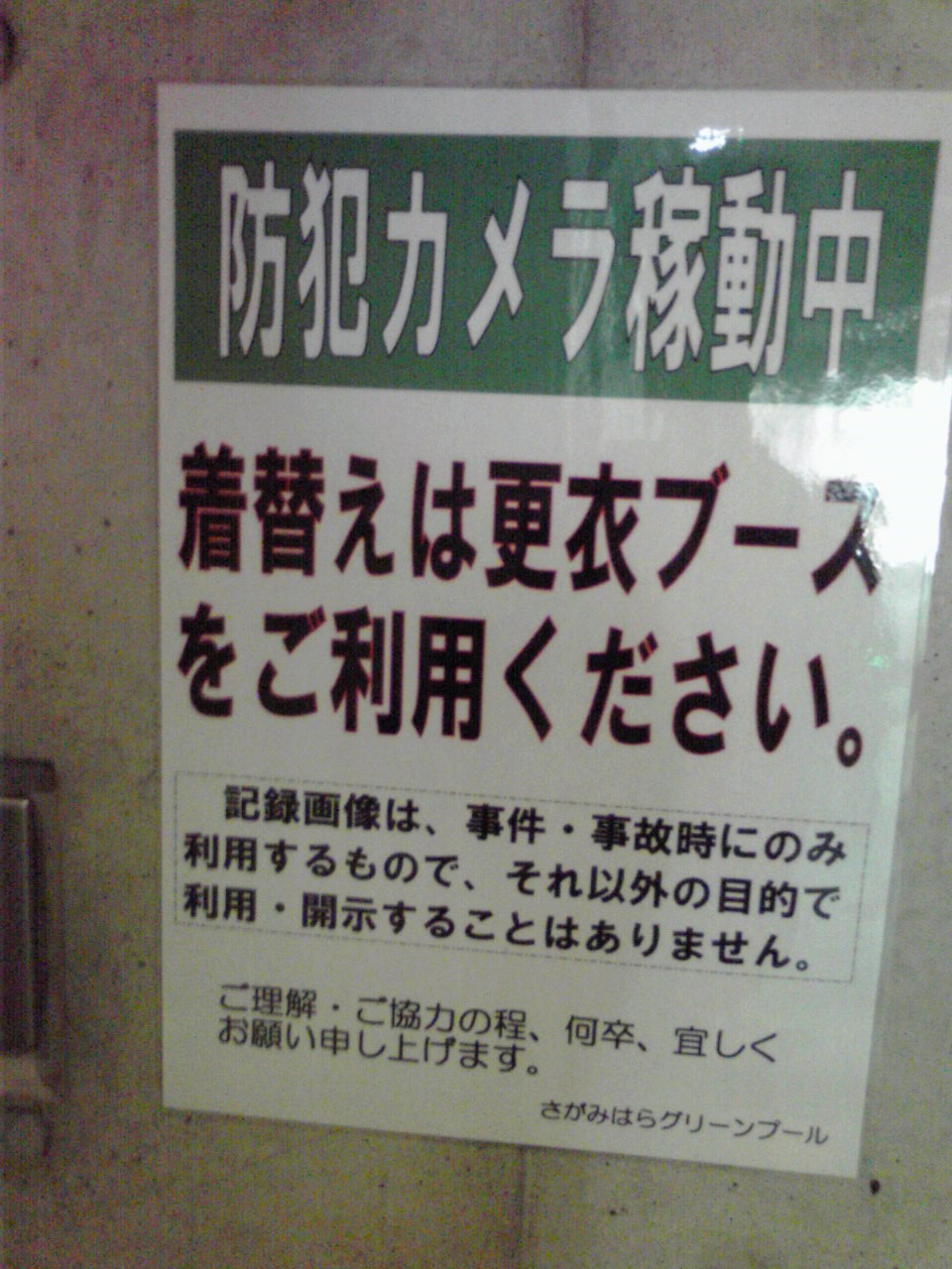 更衣室の盗難事件がちょくちょくあるので、監視カメラが導入されたようだ。写されたくない人は更衣ブースでってことで。