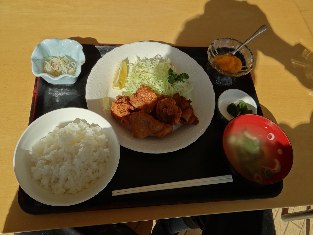 練習後はレストランたんぽぽで昼飯。窓際に座ったら暑かった。汗が出る。今日の日替わりはから揚げ定食。なかなかのボリュームだ。