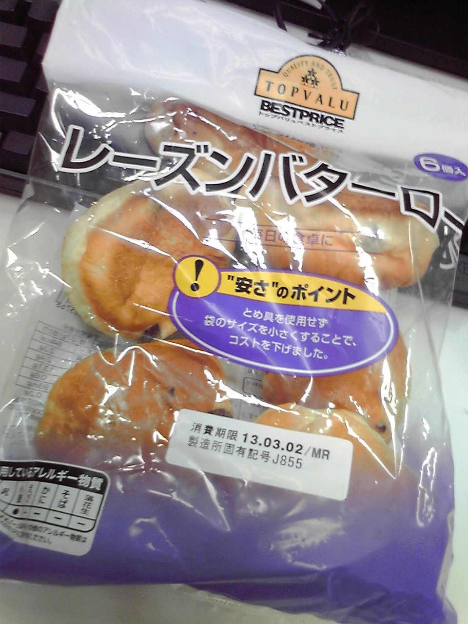 練習後の補食: プロテイン20g, レーズンバターロール4こ。