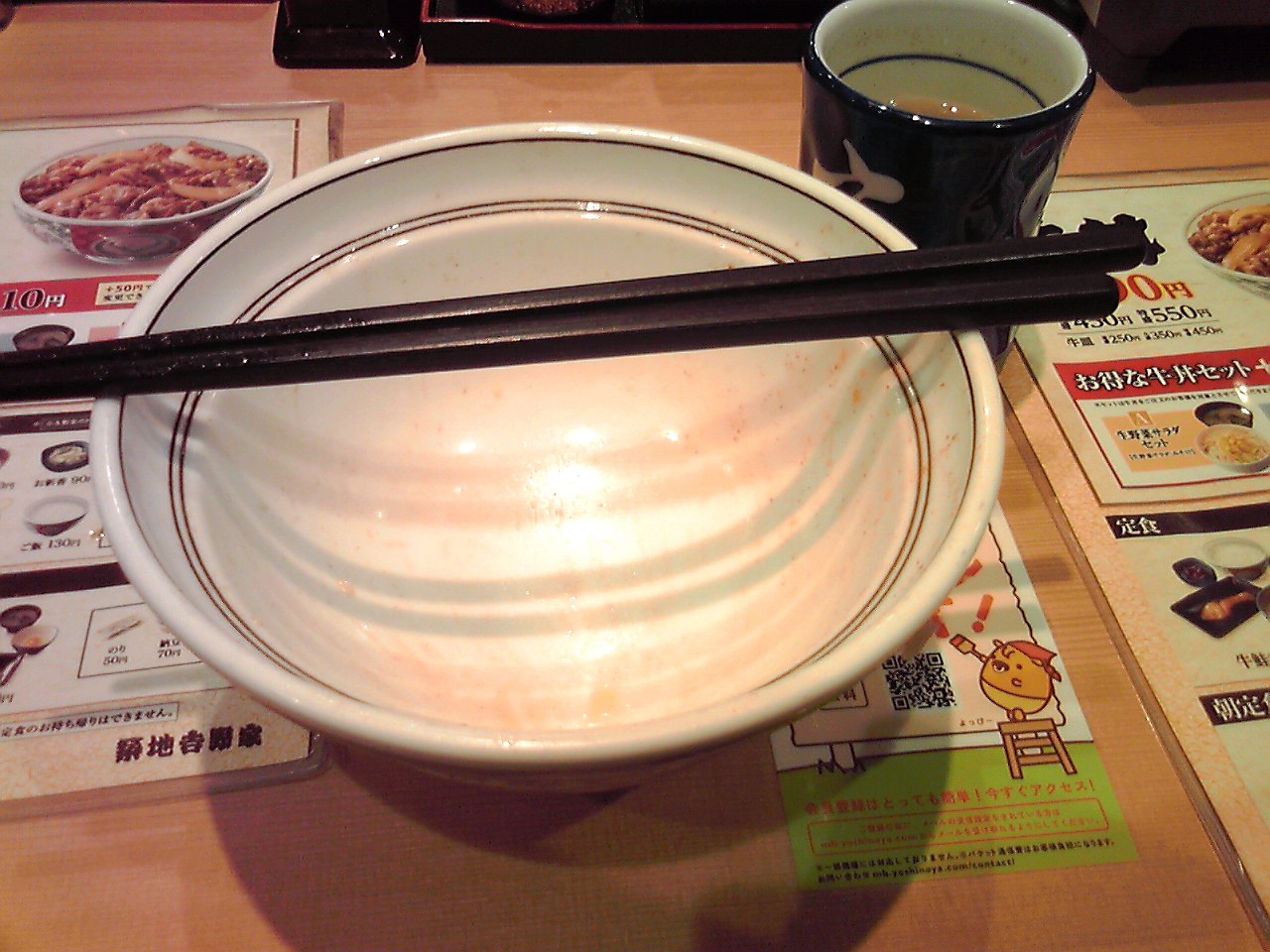 駅前マクドナルドが混んでたので久し振りに吉野屋にいって牛丼をくった。