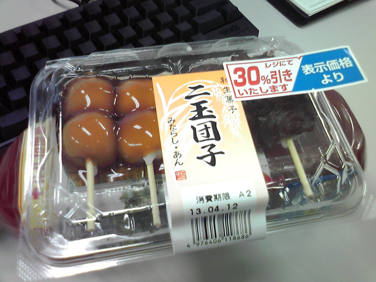 練習前の補食: 武蔵製菓 二玉団子3本