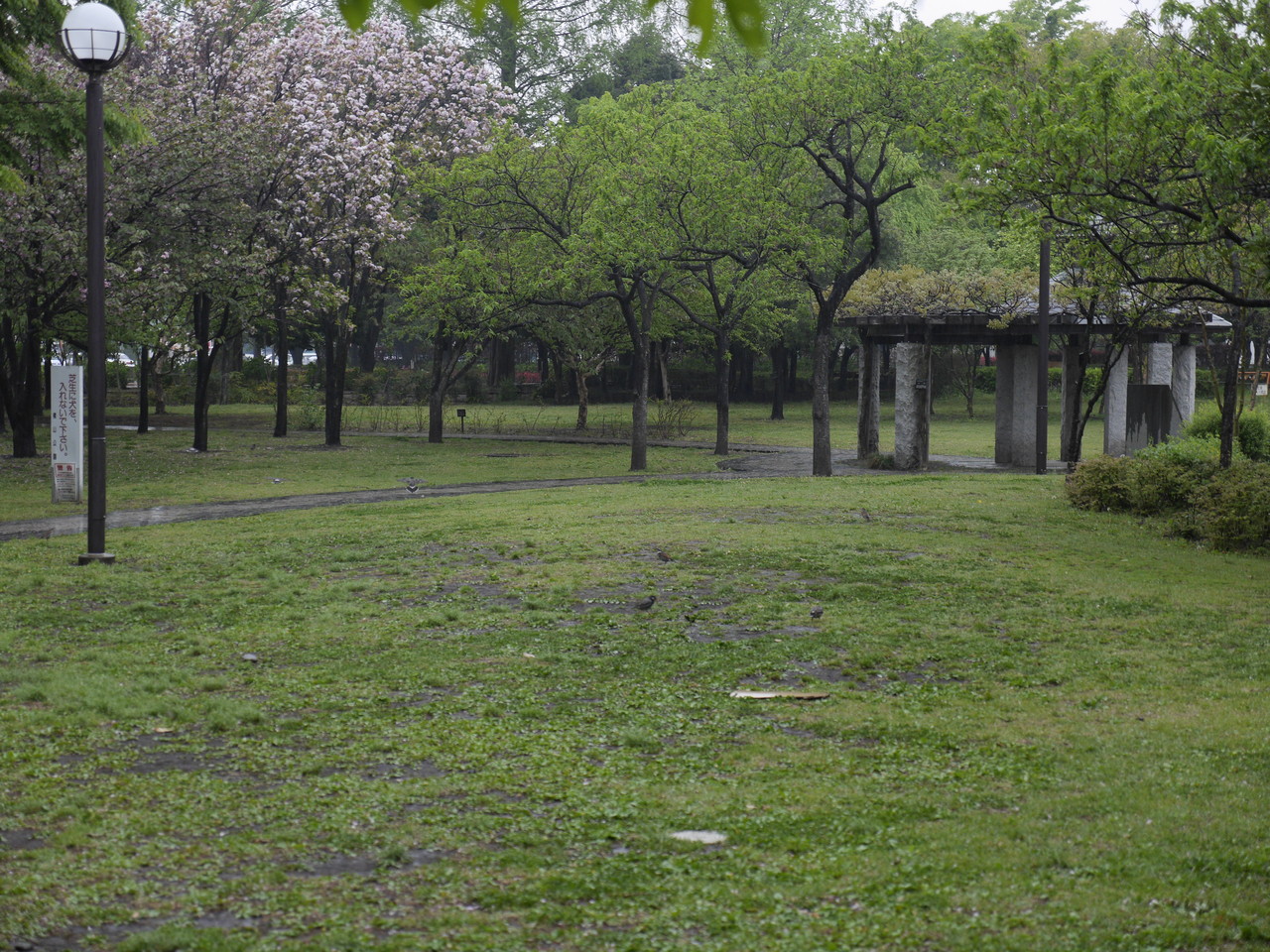 公園に人影はなく、鳥がえさをさがして歩き回っていた。犬の散歩は何人か見たか。