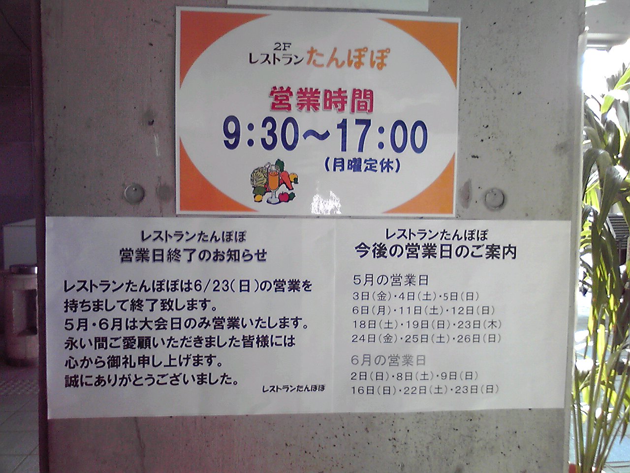 もうひとつ驚いたのはレストランたんぽぽが6月23日で営業終了との張り紙があった。しかも残り5月と6月は大会の日にしか営業しないと。やっぱり売上がきびしかったのかなぁ。