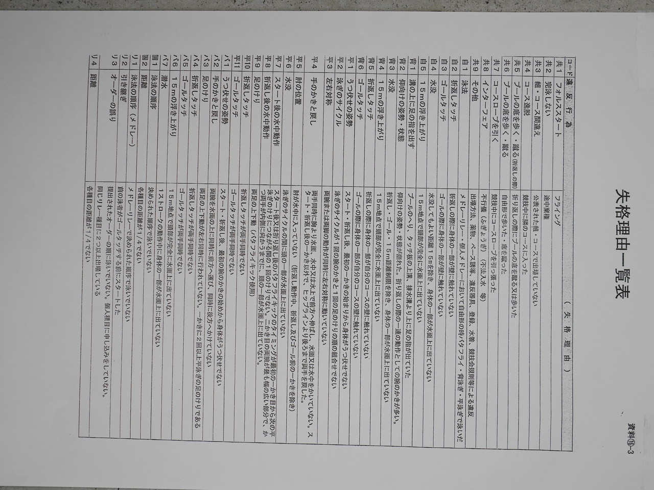 そういえば失格理由一覧がはってあった。